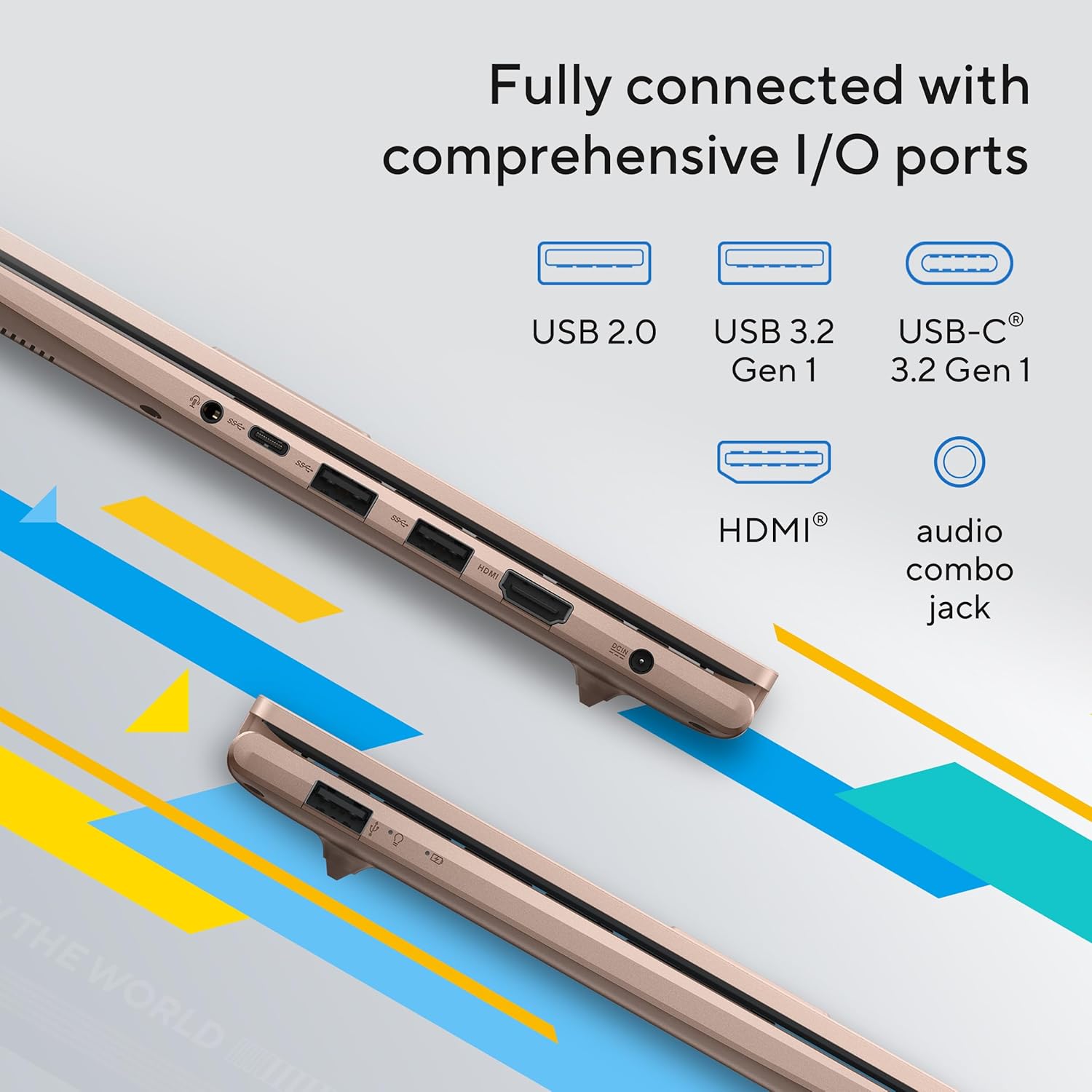 • Ports & Connectivity : 1x USB 2.0 Type-A (data speed up to 480Mbps), 1x USB 3.2 Gen 1 Type-C (data speed up to 5Gbps), 2x USB 3.2 Gen 1 Type-A (data speed up to 5Gbps), 1x HDMI 1.4, 1x 3.5mm Combo Audio Jack, 1x DC-in | Connectivity : Wi-Fi 6(802.11ax) (Dual band) 1*1 + Bluetooth 5.2 Wireless Card (*Bluetooth version may change with OS version different.)