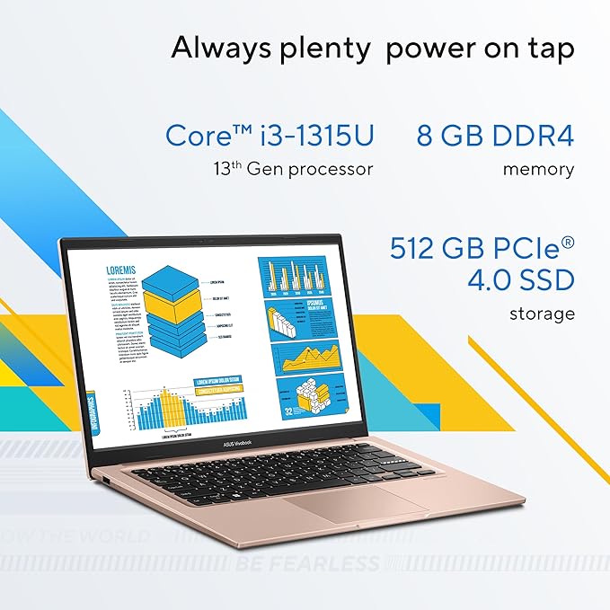 13th Gen, Intel Core i3-1315U, 8GB RAM, 512GB SSD, FHD, 14″, (35.5 cm) Windows 11 Home, M365 Basic(1 Year)* Office 2024,Terra Cotta, 1.4 Kg,X1404VA-EB323WS, Thin & Light Laptop